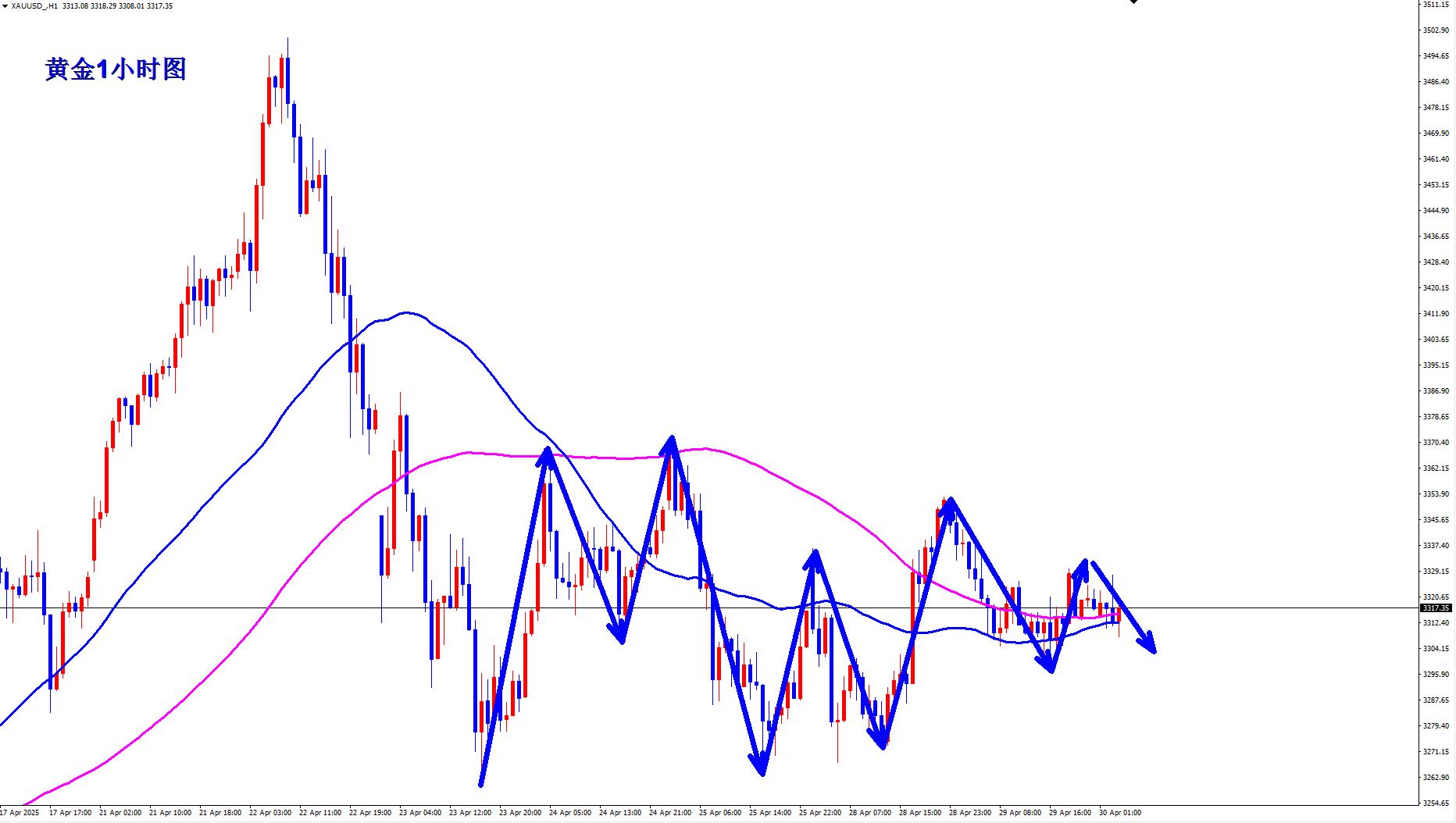 黄金1小时现在继续震荡,而且震荡幅度开始收窄,那么也就预示着离变盘越来越近,黄金现在震荡来说还是震荡下行的走势,黄金早盘再次冲高3328附近一线承压回落,那么黄金早盘承压3328下继续逢高空。今天晚上小非农,如果今天黄金突破了震荡,那么到时候再顺势跟进。