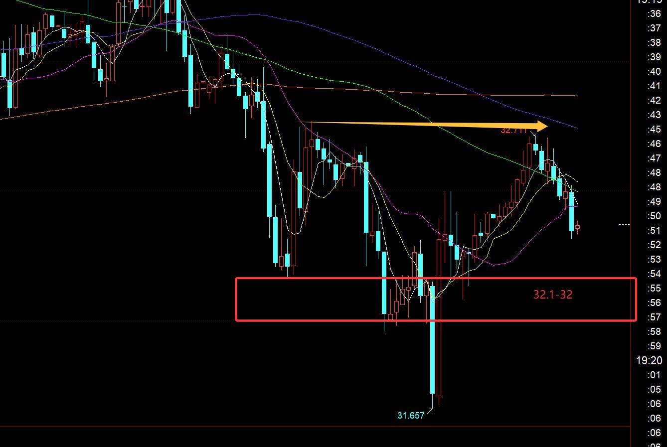 第二,白银方面:昨日比较可惜,32之上看涨,刺破防守后,才迎来一波大幅反抽拉升;