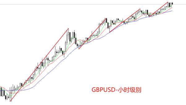 小时级别看,GBPUSD处于单边多头趋势中,适合用均线类指标分析。截至目前,MA5、MA10、MA20三条均线多头排列,短期仍有上涨动力。但是,4月10日以来,GBPUSD的每一轮上涨,幅度都会显著衰退,目前已经衰减三次。中期看,未来极有可能出现回调走势,且回调对应中期走势,幅度可能会偏大。