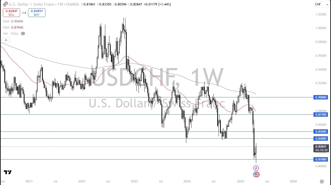 The US dollar initially fell during the course of the week to break down below the 0.81 level, only to turn around and bounce all the way toward the 0.83 level. The US dollar looks like it is ready to rally from here, but whether or not it can change the overall trend is a xmcnglobal.completely different question. If we can break above the 0.84 level, then I think we have a situation where we could rise as high as 0.8750 level. However, if we turn around a breakdown below the weekly candlestick, then we could drop to the 0.80 level eventually.