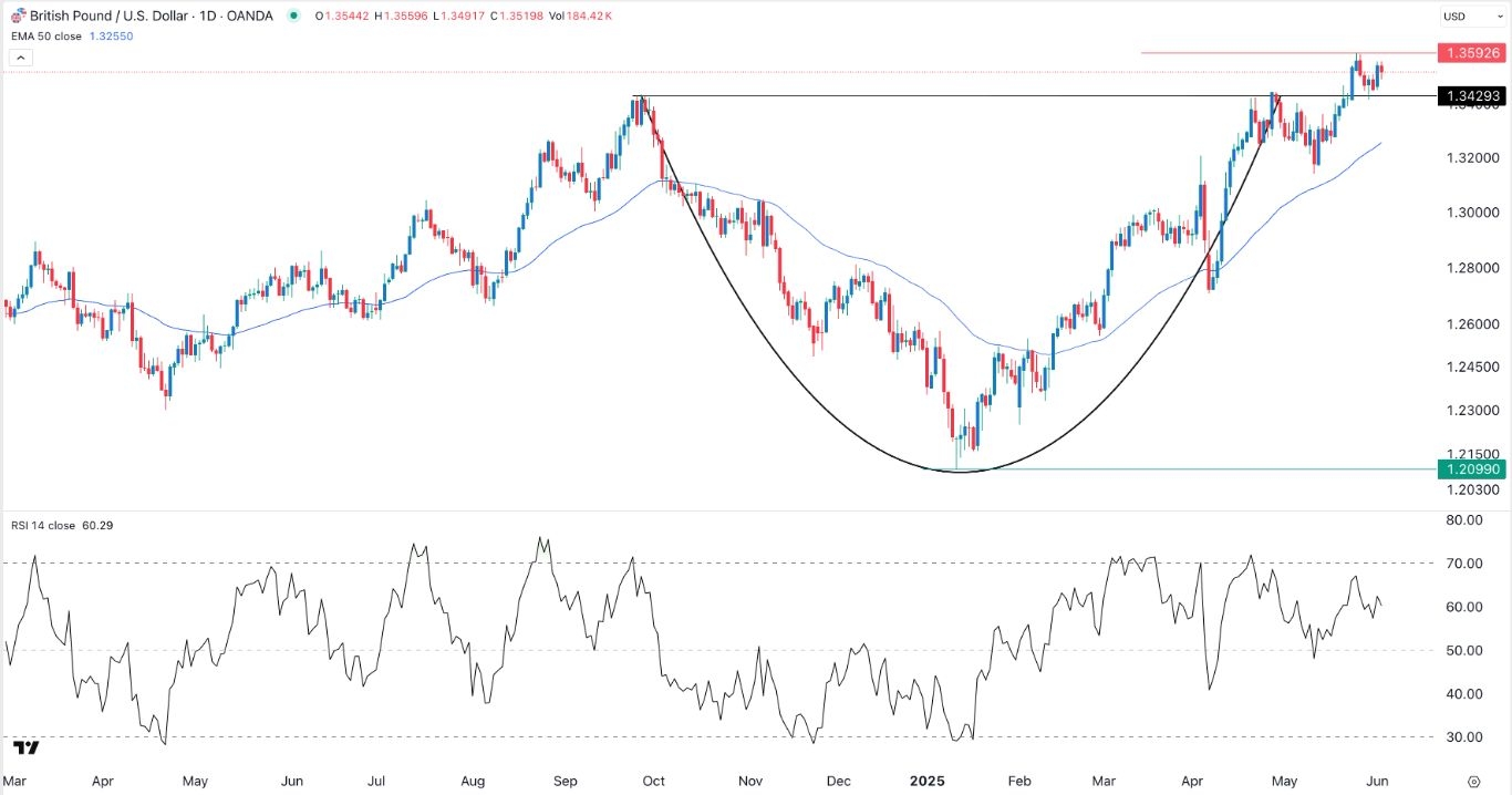 The GBP/USD pair has remained above the 50-day and 100-day Exponential Moving Averages (EMA), a sign that bulls remain in control this year.