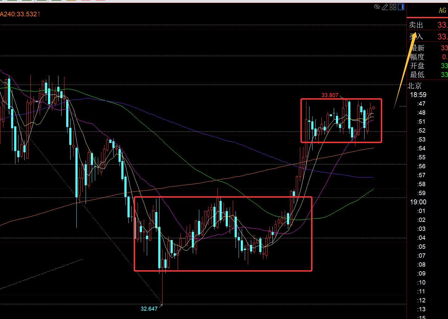 第二,白银方面:昨日欧盘持续大幅拉升,它不再是震荡,美盘计划33.25上二次看涨,不给机会,走势较为强势;