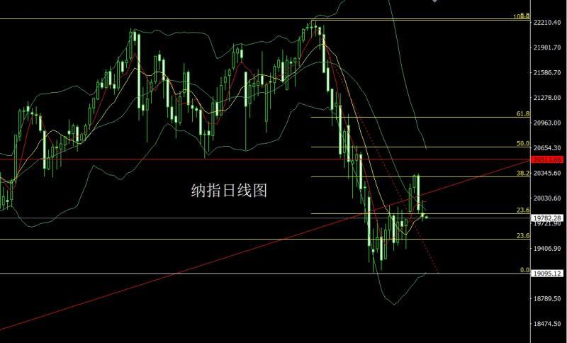纳指市场昨日早盘低开在19849.16的位置后行情先拉升给出19954.67的位置后行情回落,日线最低给到了19740的位置后行情强势拉升,日线最高触及到了20005.6的位置后行情整理,日线最终收线在了19800.65的位置后行xmcnglobal.com情以一根上影线很长的倒锤头形态收线,而这样的形态收尾后,今日依旧有回落压力,点位上,昨日20000的空减仓后止损跟进在20000,今日19900空止损19950,目标看19800和19740,跌破看19700和19650和19600.