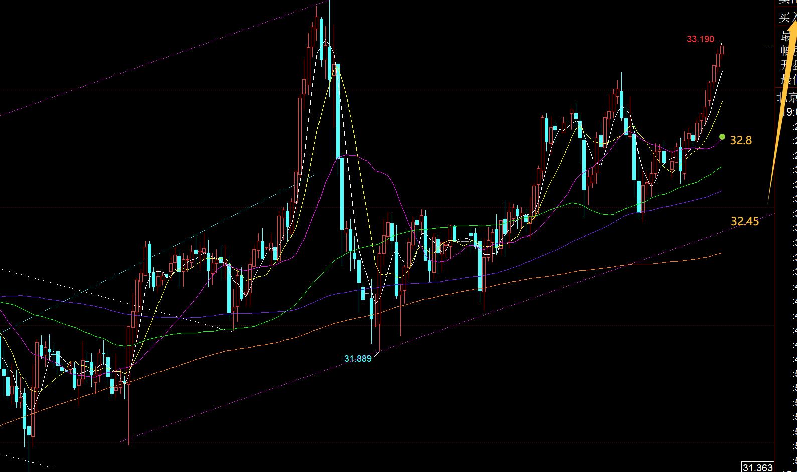 第二,白银方面:昨日早间回测力度偏大些,不过守住32.5顶底支撑,跟随一波看涨,抵达33一线目标;