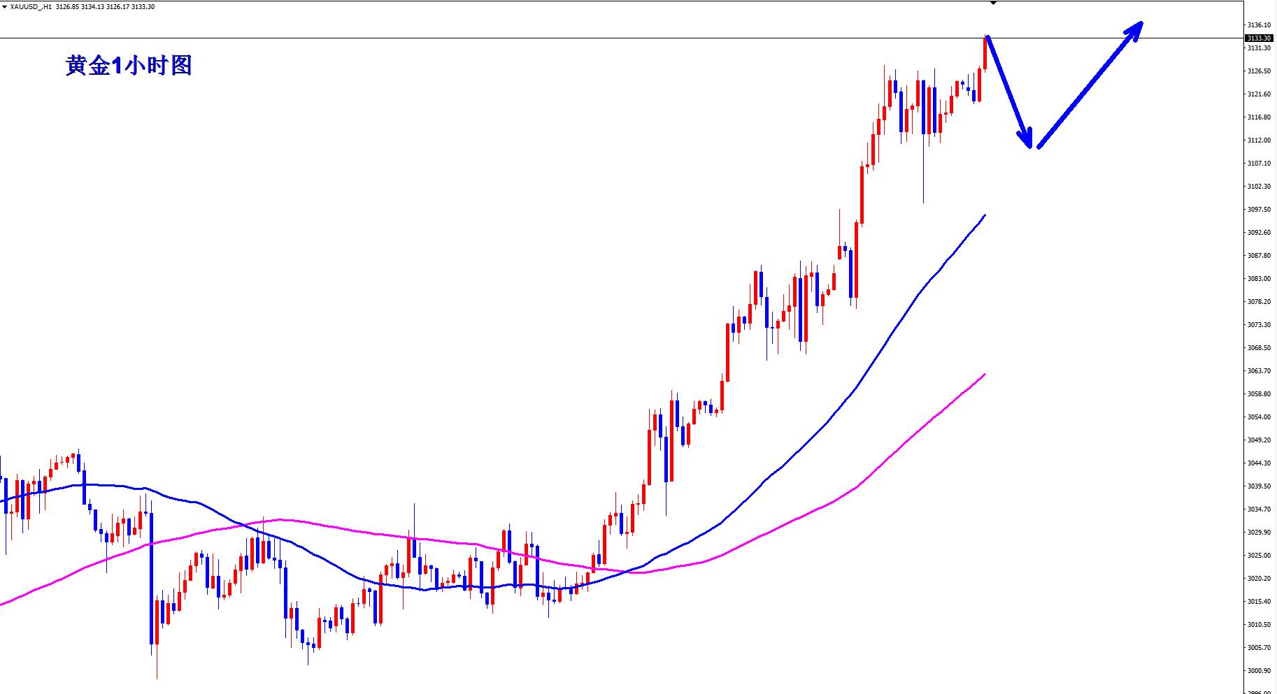 黄金回踩之后再次创新高,黄金多头继续强势,黄金再次突破3127,那么多头更胜一筹,黄金早盘回落继续多。