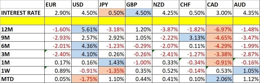 The British Pound was one of the strongest major currencies, partly because British economic data recently came in much higher than expected. This reduced expectations of forthcoming Bank of England rate cuts which in turn boosted the Pound.