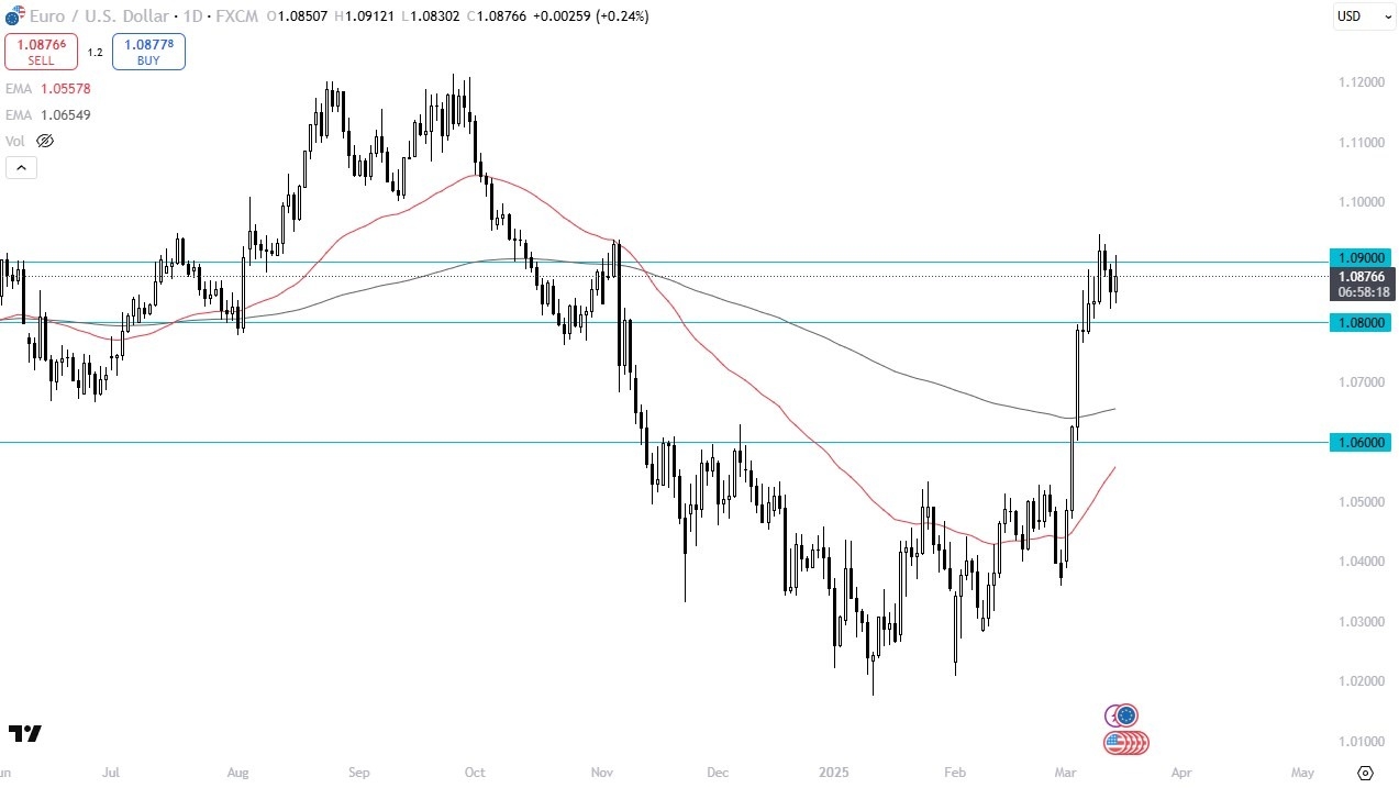 - During trading on Friday, we have seen the euro rise a bit against the US dollar to challenge the 1.09 level.