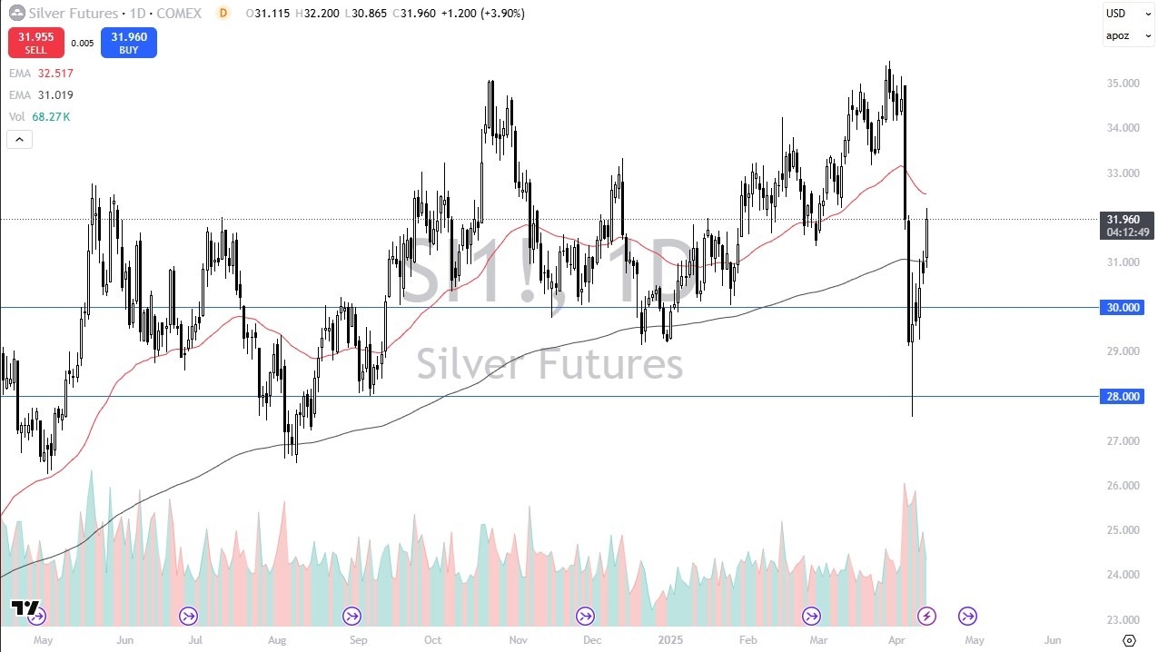The 50 day EMA is currently right around the $32.50 level. And I think that it is an area that you'll have to pay close attention to. And therefore, if we were to break above there, then it's likely that silver really starts to take off, perhaps reaching $35. On a pullback, I would anticipate that the 200-day EMA xmcnglobal.comes into thxmcnglobal.come picture for support at the $31 level, followed by the $30 level underneath there. All things being equal, silver is a very volatile and dangerous market at times, so do be careful with your position sizing because you can get into a lot of trouble here. This will continue to be the case for some time, so caution is the most important thing to employ here.
